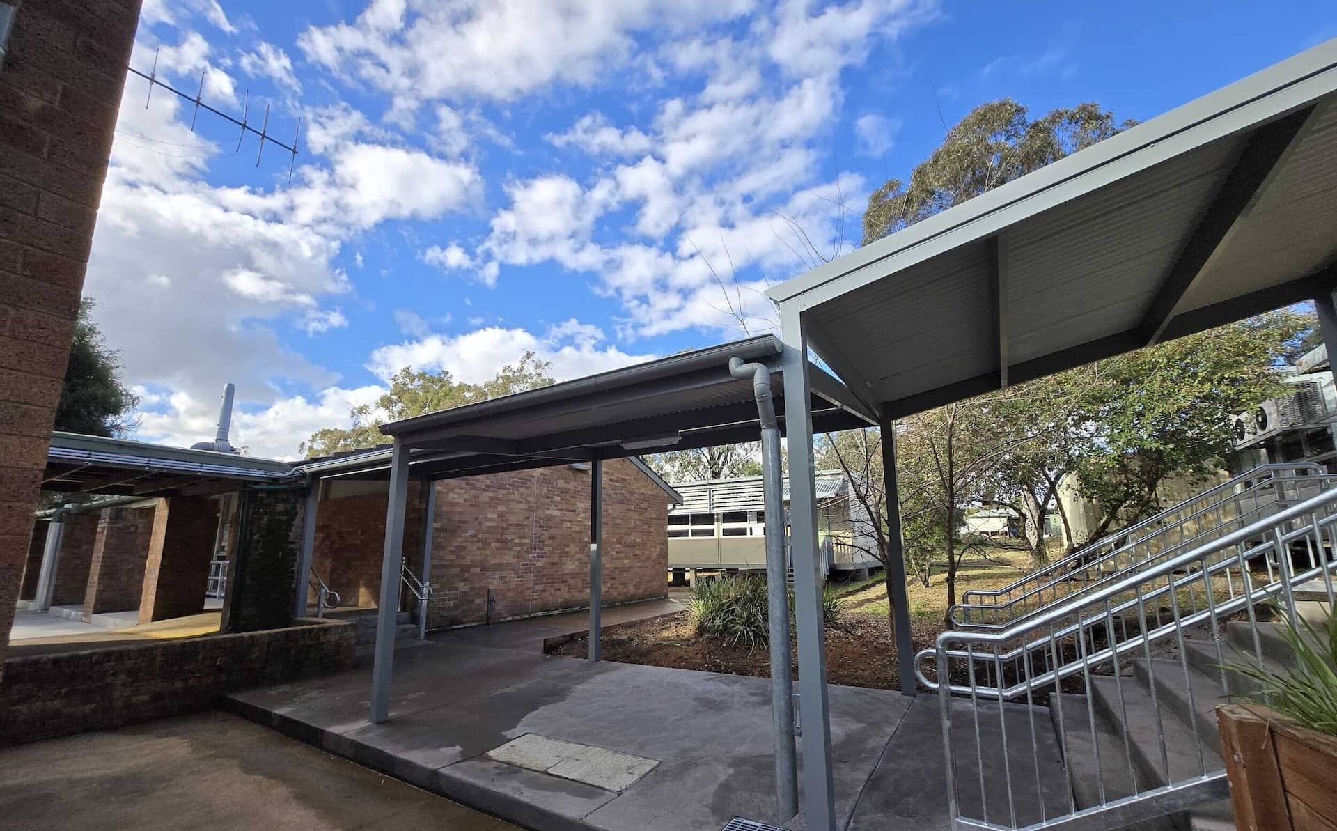 Merriwa Central School’s existing timber walkway had reached the end of its lifespan. The old structure were deteriorated beyond viable repair, creating ongoing safety and maintenance issues. They also posed hygiene challenges due to bird nesting, they lacked gutters and downpipes for proper drainage and failed to meet accessibility standards. The school required a durable, compliant and visually cohesive solution that could be delivered quickly, within the school holiday period and with minimal disruption to students and staff once term resumed.